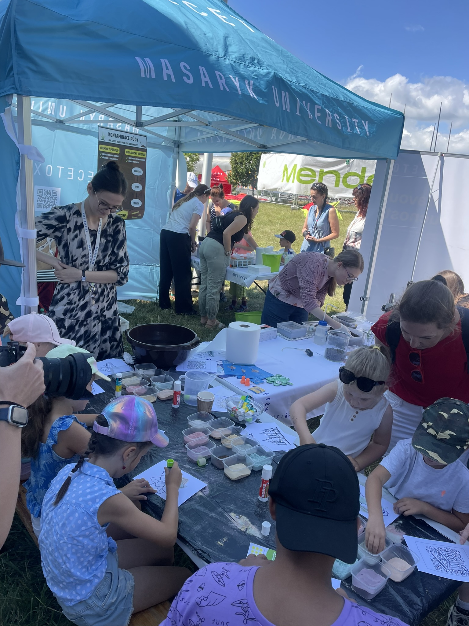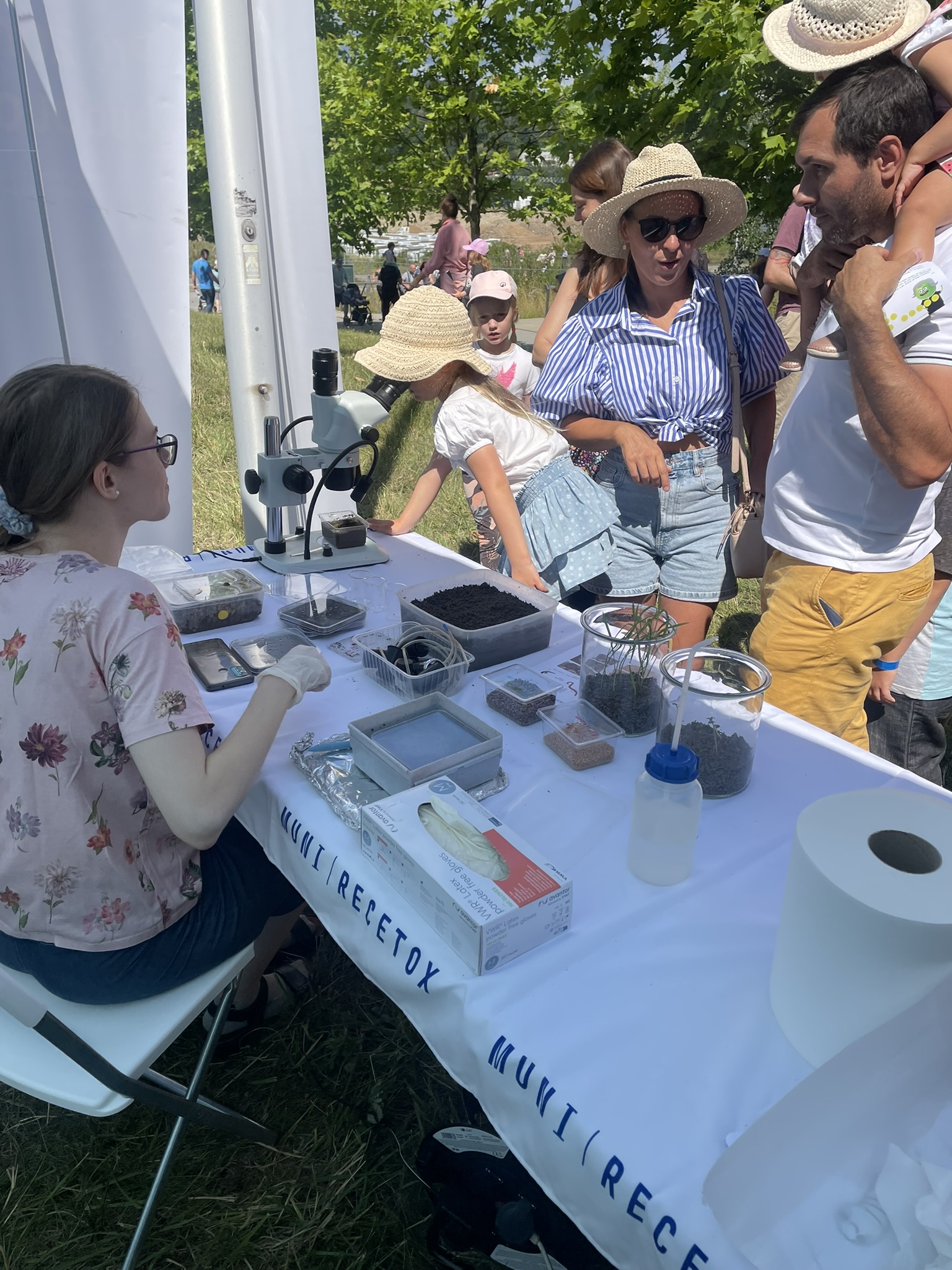 RECETOX once again took part in the annual Mendel Festival in Brno this year. This time, we focused on the topic of soil and its sustainable use. At our booth, lecturers, scientists, and volunteers discussed with visitors how we analyze soil composition – from both biological and chemical perspectives. Popular science activities were also prepared for younger visitors; children could enjoy, for example, sand painting.